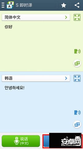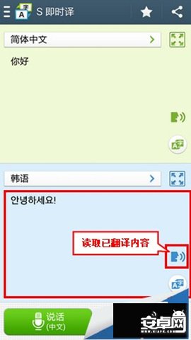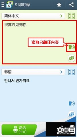7、手機將會翻譯您所講的內容。在語言區點擊【講話】圖標,可使得手機讀取已翻譯內容;