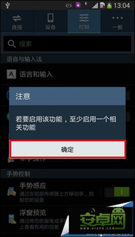 4、將【手勢感應】右側的滑動塊向右滑動;