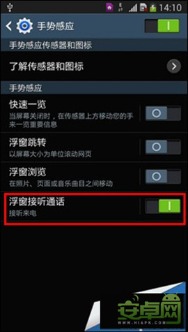 注:點擊【浮窗接聽通話】→【試用】,可以體驗手勢接聽的具體使用方法。