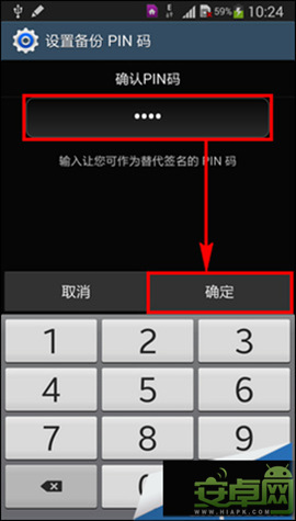 10、再次輸入設置備份PIN碼,然後點擊【確定】即可完成簽名解鎖的設置;