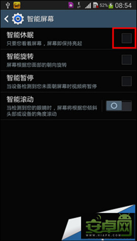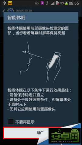 現在要說的三星Note3使用技巧是,Galaxy Note3如何開啟和使用智能休眠功能,這項功能是通過機器前置攝像頭眼部智能識別技術,實現自動保持屏幕亮度。三星Note3的智能休眠怎麼用,打開這項功能,在閱讀電子書或者浏覽網頁時,就可以免受黑屏打擾。