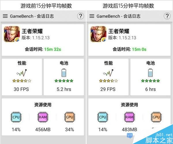 此外,在30分鐘時間內,OPPOR9s在前後15分鐘游戲時間內的平均幀數分別達到30 FPS和29 FPS。由此可見,在《王者榮耀》這款手機游戲上,骁龍625能夠完美運行,這得力於骁龍625優秀的14nm工藝制程。根據以上測試得知,OPPOR9s玩王者榮耀能夠完美流程運行,而且在長時間運行下,也不會因為功耗而降頻帶來卡頓,請大家放心體驗游戲。