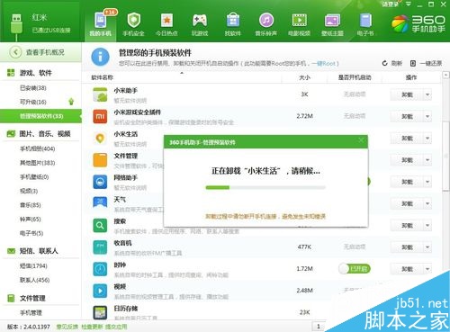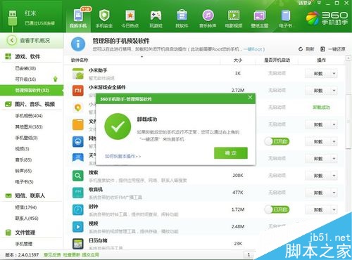 等幾秒鐘,就可以卸載成功了!同樣,也可以卸載其他的小米自帶軟件,還一個清新的系統。