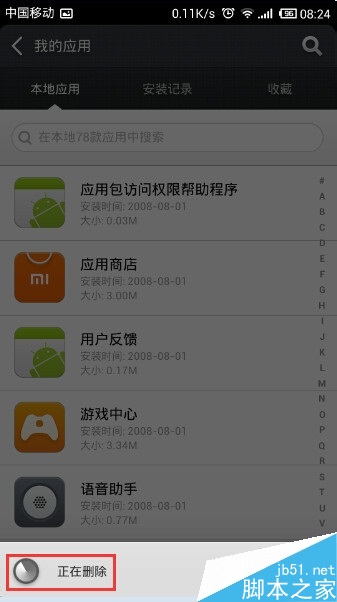 找到我們需要卸載的程序【小米生活】按住它可以選中,點擊【刪除】