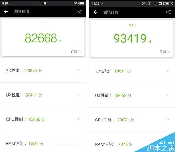 那麼Helio X20和目前主流CPU相比,性能大概處於什麼水平呢?根據對比發現,Helio X20的性能參數與骁龍652比較相近。跑分方面Helio X20機型達到93419分,十核全開確實人多力量大,相比骁龍652設備為82668分,高出1萬分。