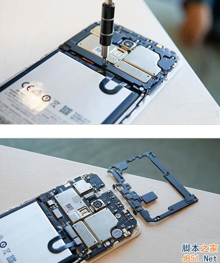 拔出所有排線之後,再卸下2顆十字螺絲,即可徹底分離主板與金屬中框。