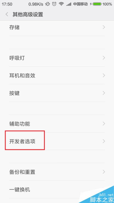 接下來,請大家打開手機設置中的“其他高級設置”頁面,在高級設置頁面中點擊選擇“開發者選項”菜單。