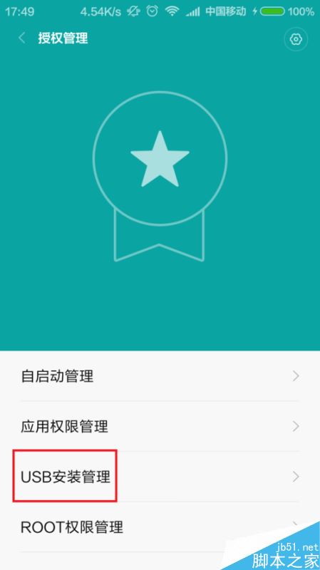 接下來,在打開的設置中,點擊選擇“USB安裝管理”選項,點擊該選項之後即可進入相應的設置項目。