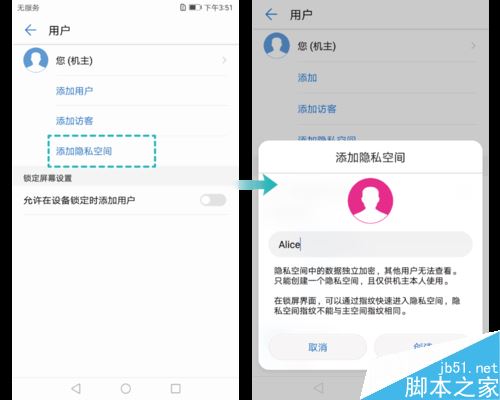 在【設置】>【高級設置】>【用戶】界面,可以刪除隱私空間。