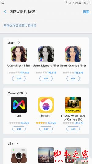 而濾鏡方面,三星Galaxy C9 Pro也是應有盡有,默認提供深度、粉筆色、字母組合、電影、復古、美食、金色和懷舊八種選擇,除此之外用戶還可以自行下載更多濾鏡。三星Galaxy C9 Pro所提供的濾鏡非常特別,支持用戶自定義強度和暈影。