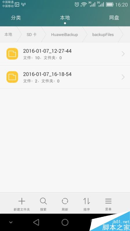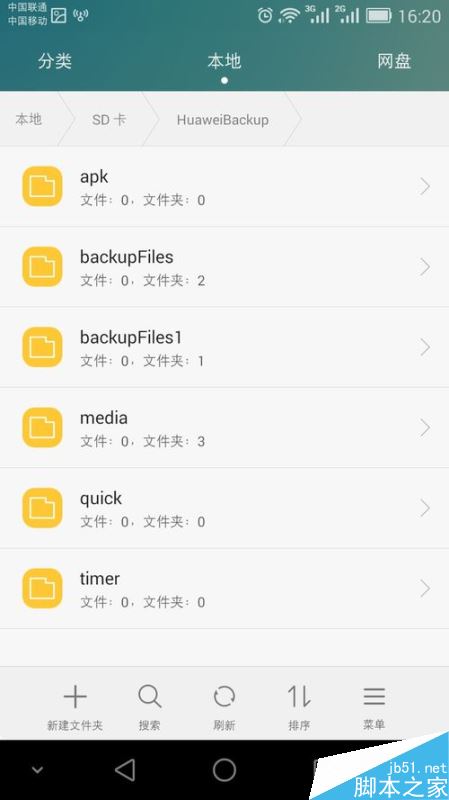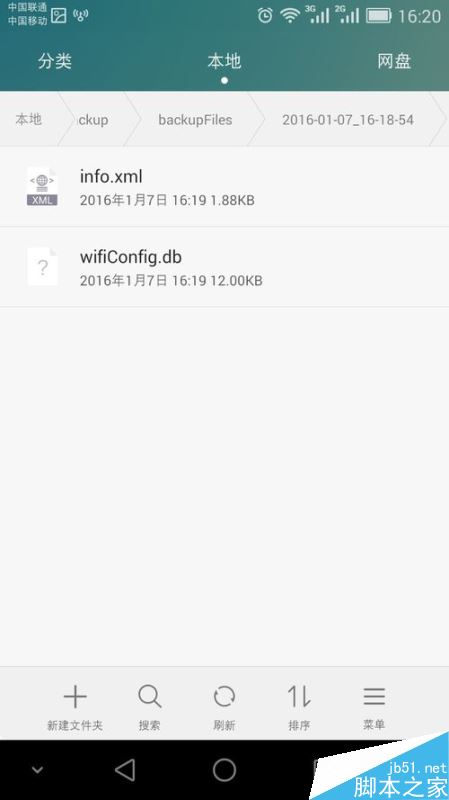 在SD卡裡(看之前備份時存的,也可以是內置儲存)找到HuaweiBackup文件夾,點進去,再進入backupFiles文件夾,裡面就有按時間建立的備份文件夾,按時間選擇,我的是16時的,裡面就有一個wifiConfig.db。
