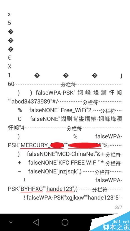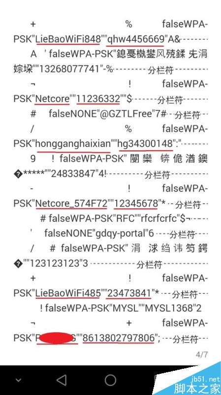 改下文件後綴名為txt,文本查看。先找wifi名字,後面跟著就是密碼了。(劃線都是,前為wifi名,後為密碼)