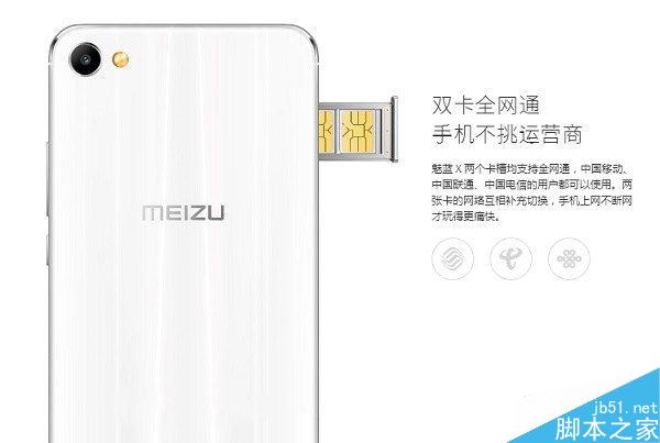 魅藍X采用單卡雙卡槽方式,雙卡槽均為SIM卡槽,采用雙Nano SIM卡設計,支持雙卡雙待,但不支持Micro TF內存卡擴展。對存儲容量有較高要求的朋友,建議購買64GB高配版。