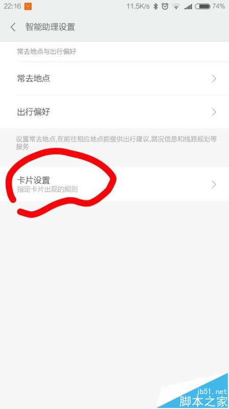 3、點擊卡片設置,這裡可以設置你的家的地址,方便它提示你回家的路線。