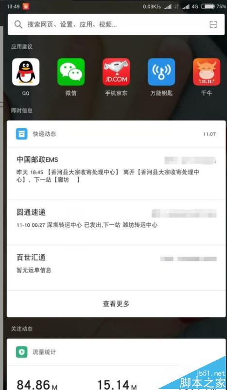 在主界面往左劃就會顯示近期應用與一些快遞信息之內的都會在這裡顯示。這是安卓裡的首例吧。也是很方便的。