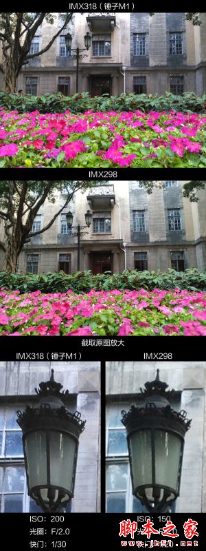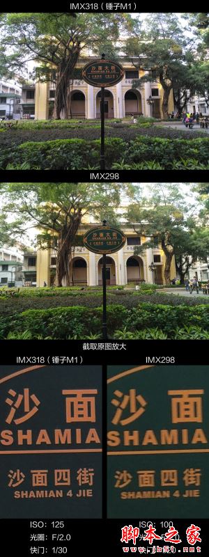 錘子M1主攝像頭具有2295萬有效像素,相比主流的1600萬像素高出約41%,理論上可以保留更多細節。IMX298對於路標文字的解析已經力不從心,而IMX318則顯得從容許多。