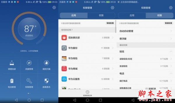 特色功能方面又要拿出他家的手機管家舉例了,首先我比較喜歡的一個功能就是權限管理,可以根據App進行管理,也可以根據具體權限進行管理,所以假如你嫌棄某些App的廣告推送通知,只要關閉該App的通知權限即可。