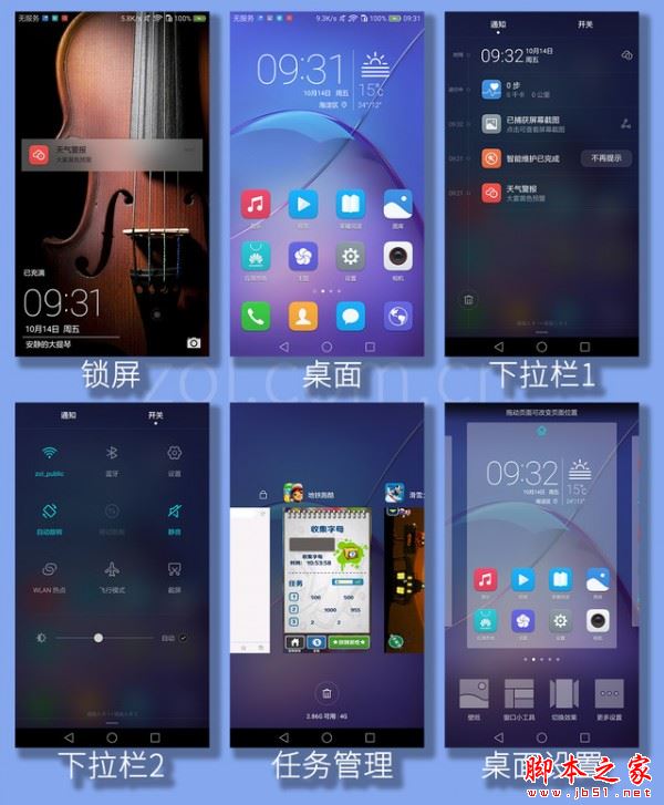 上圖幾個界面可以大致了解EMUI4.1的界面風格,當然此界面完全是系統默認狀態,在主題商店中更多免費漂亮主題在等你領走,上至父母晚輩下至學齡前兒童全覆蓋。