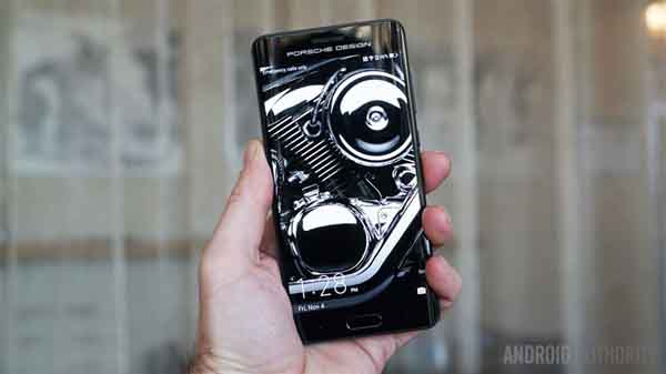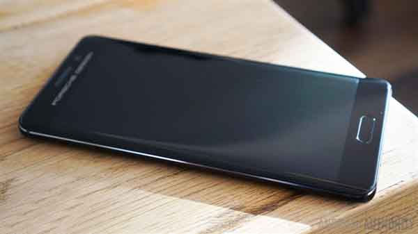該機采用了正面指紋識別方案,頂部有著“PORSCHE DESIGN”的印刷LOGO,背面是金屬拉絲機身,做了弧形處理,貼合手感。