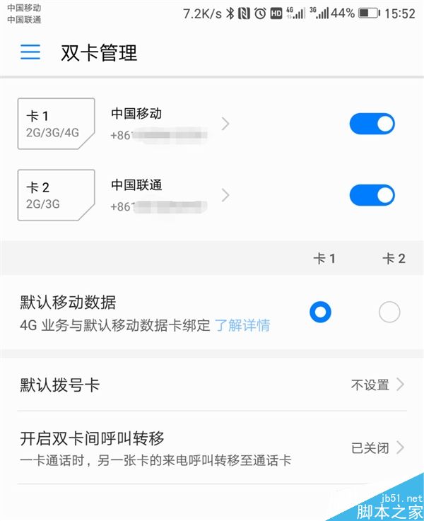 可以看到,雙卡中的移動主卡為4G模式,聯通副卡則是3G模式,成功開啟。