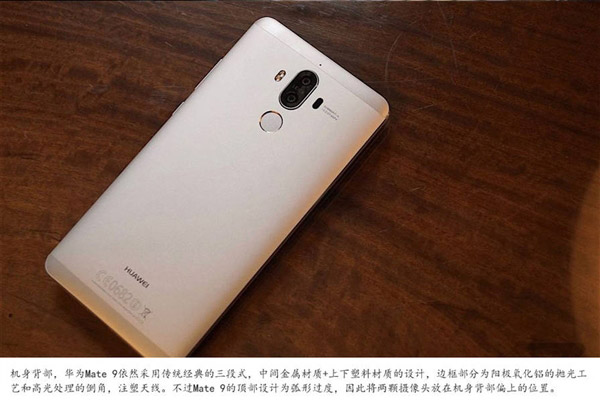 Mate 9采用了50多種全新獨特工藝打造,包括長達一小時的CNC加工,最終獲得一體化金屬機身,整機厚度僅7.9毫米,顏值和手感都比上代有大幅度提升,並提供蒼穹灰、摩卡金、月光銀、陶瓷白、香槟金、黑色等多種外觀。