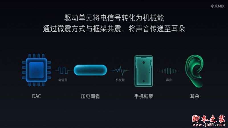 其實早在剛發布時候,我們就曾對此進行介紹。它使用的並不是傳說中的骨傳導技術,而是懸臂梁壓電陶瓷振動然後傳導到手機中框的發聲方式。也就是把音頻數字信號轉換成模擬信號,然後引導陶瓷中框共振,最後通過聲波傳遞到耳朵裡。