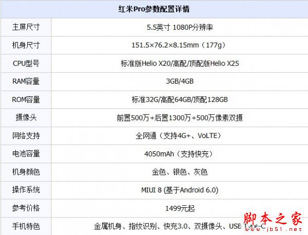 售價方面,紅米pro有三個版本,其中3GB+32GB標准版1499元,3GB+64GB高配版1699元,4GB+128GB尊享版1999元。8月6日,將於小米商城/ 小米之家現貨首發。