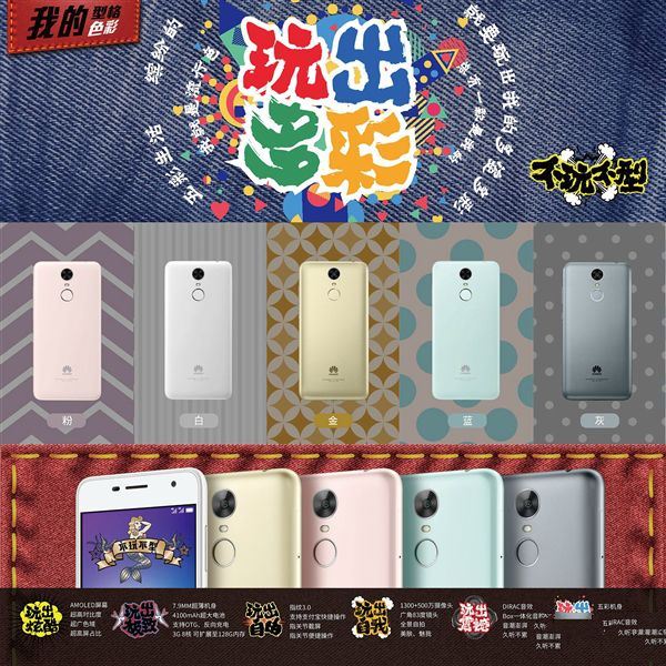 內部配置處理器采用聯發科MT6750 1.5GHz八核心,搭配3GB內存、16GB存儲(最大可擴展128GB),1300+500萬攝像頭組合,支持83度廣角、全景自拍、十級美膚、魅我模式等,EMUI 4.1 Android 6.0操作系統。