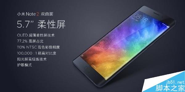 官方數據顯示,小米Note 2采用了新一代5.7英寸OLED柔性屏,擁有110% NTSC高色彩飽和度和100000:1超高對比度。