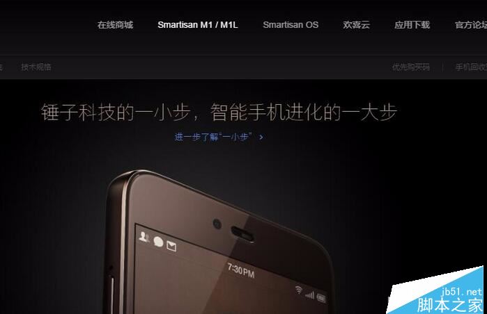 首先,用戶登陸到錘子科技網的主界面,進入到主界面後用戶點擊查看如何預訂Smartisan M1 / M1L手機,進入到其首頁後,我們點擊了解“一小步”。