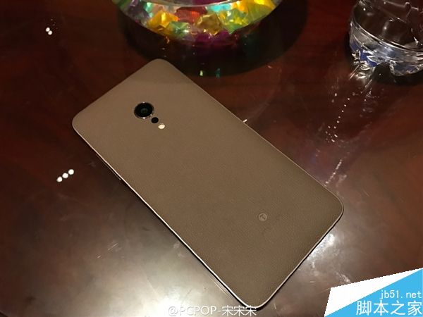 從圖片來看,咖啡金皮革版的Smartisan M1L通體都是咖啡金色,背部攝像頭略有凸出,皮革後殼逼格滿滿的,屏幕也有些細微黑邊,但在可接受范圍內。