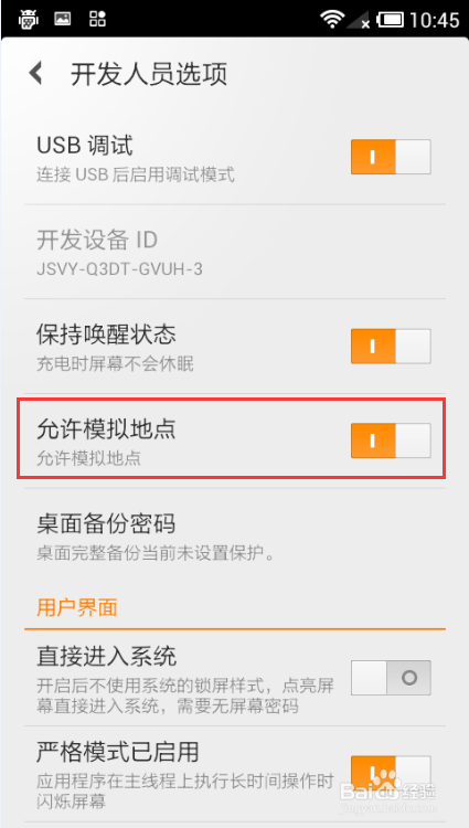 3.如果手機沒有root權限時,請打開手機的系統設置,選擇「開發人員選項」,將「允許模擬地點」設置為開啟狀態。