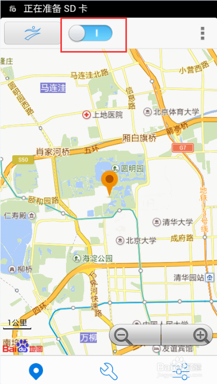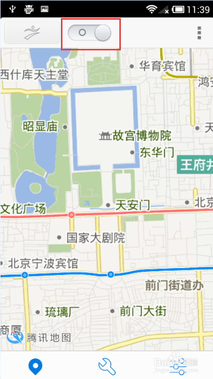 7.當你不想繼續使用神行者定位功能時,請將主界面的開關按鈕關上,坐標圖標將會隱藏,之前設置好的虛擬位置失效。