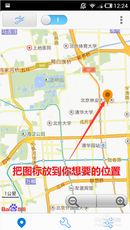 5.通過對地圖的放大縮小、左右滑動,用手指點擊你想要定位的地點。