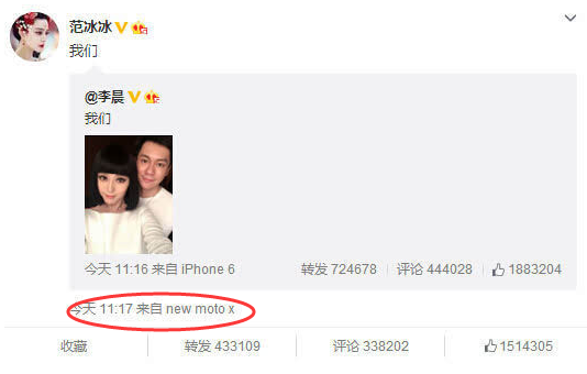 new moto x是什麼手機?當所有人關注李晨范冰冰戀情時,小編倒發現了一絲奇特之處,看看范冰冰發布的微博小尾巴,之前的還是iPhone 6,今天這條