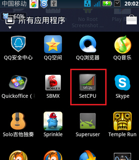 注意事項:手機必須已經獲取Root權限,否則不能正常使用Setcpu的功能。