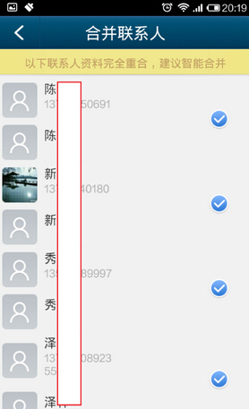 4、對一些帶相同號碼不同名稱的聯系人,軟件進一步提供手工合並的功能。