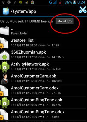 為了避免操作失誤而導致手機無法正常運行Re管理器默認是只讀的,即無法刪除文件。這就需要我們將其修改為讀寫,點擊上面的按鈕即可完成切換。