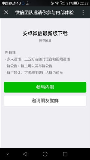 Android版微信剛剛開始了6.5版本的內測,新功能不多只有三條,但都很給力。