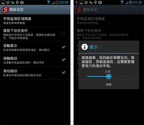 在高級設定裡可設置更詳細的操作屬性!和手勢的靈敏度等相關設置。讓操作的失誤率更低!