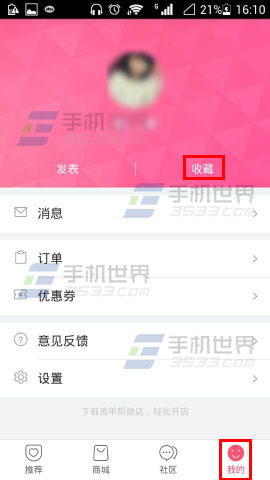 1)首先打開美甲幫,進去之後點擊【我的】,接著點擊【收藏】。(如下圖)