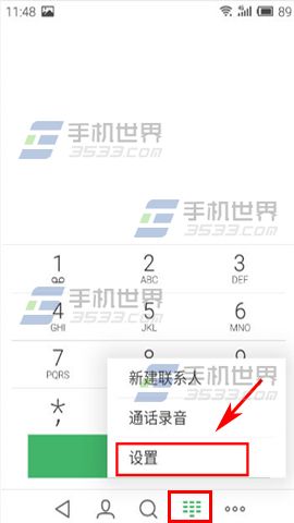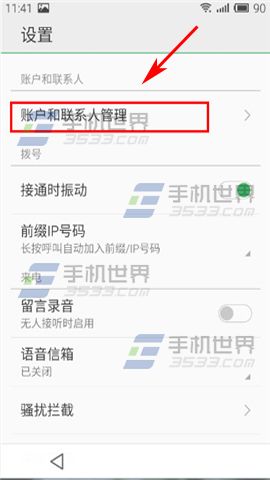 1)進入撥號界面,單擊屏幕右下角功能按鈕,選擇【設置】,在設置界面選擇【賬戶和聯系人管理】。(如下圖)