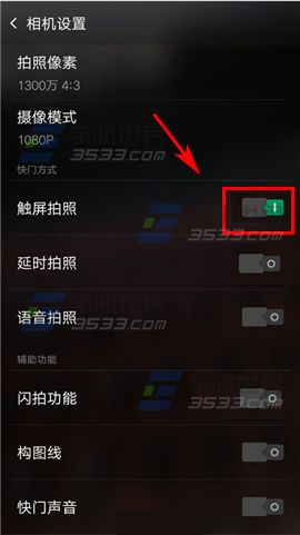 2)開啟【觸屏拍照】右邊按鈕,這樣你就可以隨心所欲點哪拍哪了。(如下圖)