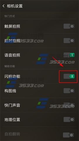 2)打開【閃拍功能】右邊的開關即可。(如下圖)