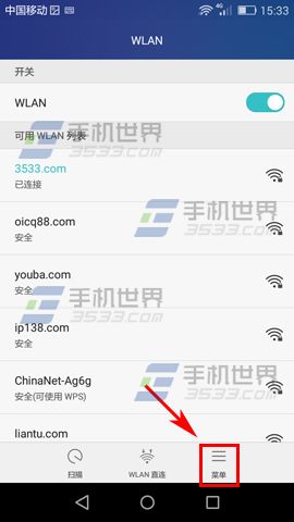 2)在【WLAN】界面裡點擊下方的【菜單】按鈕,選擇【高級設置】。(如下圖所示)