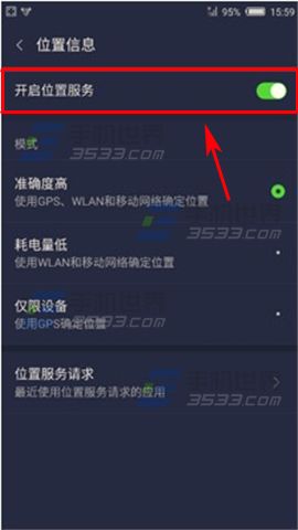 2)點擊【位置信息】進入,打開【開啟位置服務】右邊按鈕即可。(如下圖)