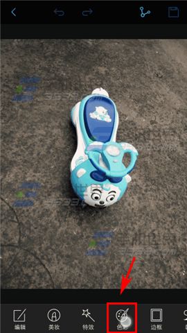 2)點擊【色彩】進行顏色調整,選擇一種【效果】,按住【按鈕】左右調整強度。完成後點擊【應用】保存。(如下圖)