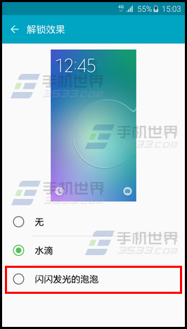 6.滑動解鎖效果已更改,在鎖定屏幕以任意方向、位置滑動屏幕解鎖時,即可顯示閃閃發光的泡泡效果。
