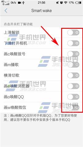 2)進入界面點擊【Smart wake】,進入後開啟你需要的應用程序【按鈕】即可。(如下圖)