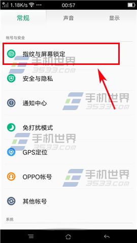 1)進入OPPO R7Plus的設置界面,在帳號與安全中點擊【指紋與屏幕鎖定】進入,在已經錄入指紋的情況下,需要輸入密碼確認,這裡的密碼是當初錄完指紋後輸入的屏幕解鎖密碼。(注:指紋錄入的方法請強擊相關教程)(如下圖)